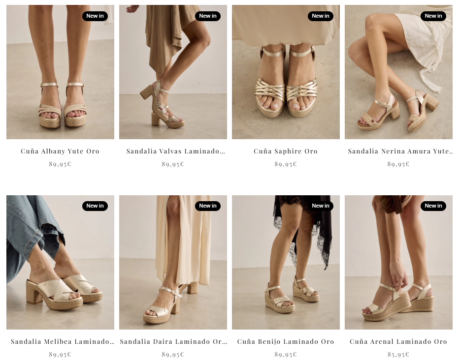 En su tienda online encontrarás desde sandalias planas y cuñas hasta alpargatas, botines y sneakers. Eso facilita crear un pequeño “fondo de armario” solo con la marca: un par para el día a día, otro para eventos y alguno más casual para escapadas o viajes.